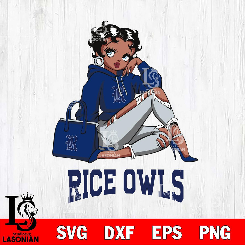 Rice Owls Awesome Black Fan Girl Betty Boop, Svg Eps Dxf Png File, Digital Download