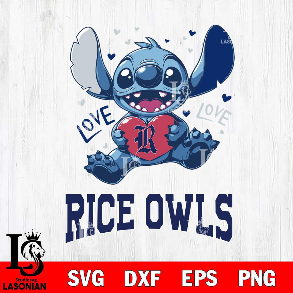 Rice Owls Love Stitch, Svg Eps Dxf Png File, Digital Download