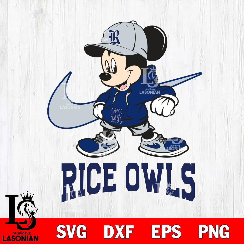Plus, you can print these designs on a wide range of surfaces such as mugs, t-shirts, tumblers, flags, and more. Unleash your creativity and personalize your world with Rice Owls Mickey Mouse NIKE