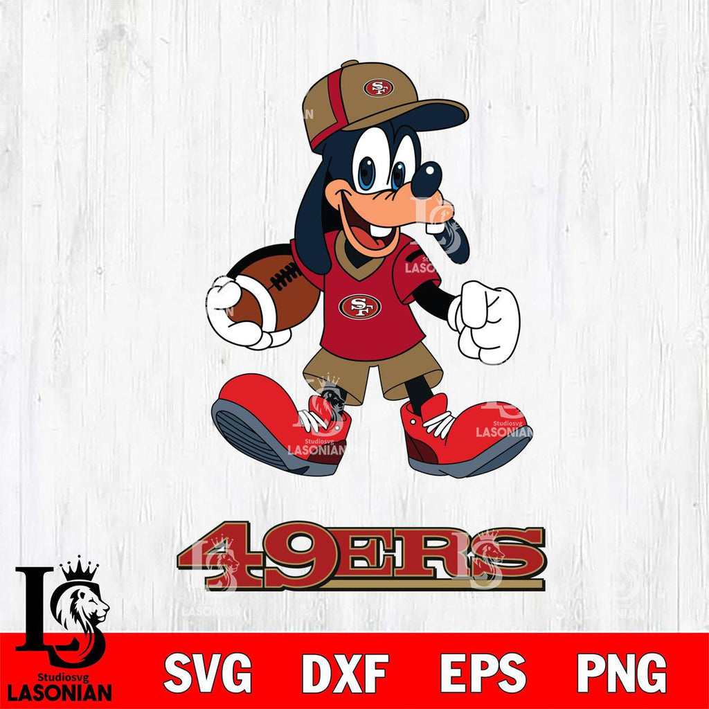 Plus, you can print these designs on a wide range of surfaces such as mugs, t-shirts, tumblers, flags, and more. Unleash your creativity and personalize your world with San Francisco 49ers Goofy Football Player
