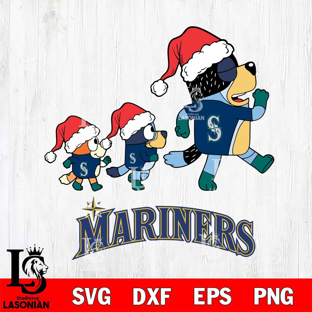 Plus, you can print these designs on a wide range of surfaces such as mugs, t-shirts, tumblers, flags, and more. Unleash your creativity and personalize your world with Seattle Mariners Bluey Family Christmas