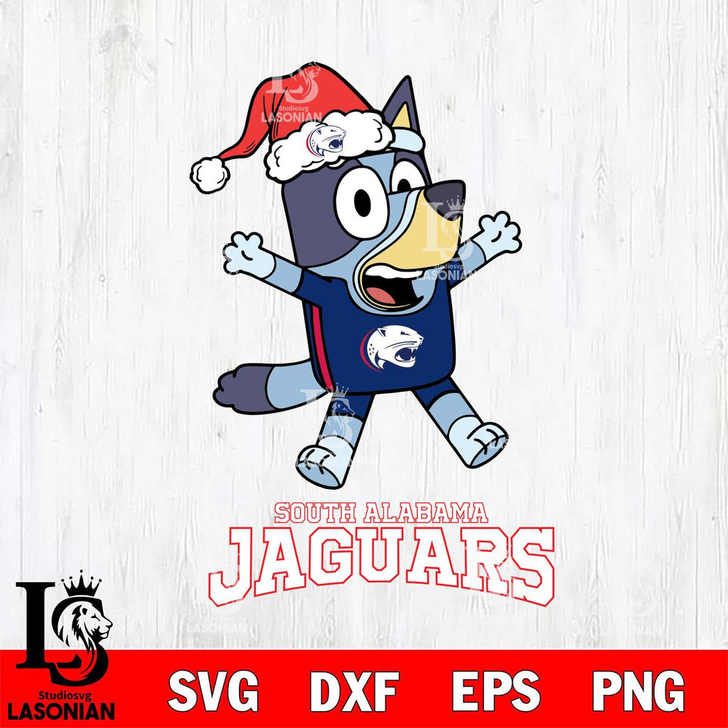 South Alabama Jaguars Bluey Happy Christmas Svg Eps Dxf Png File, Digital Download
