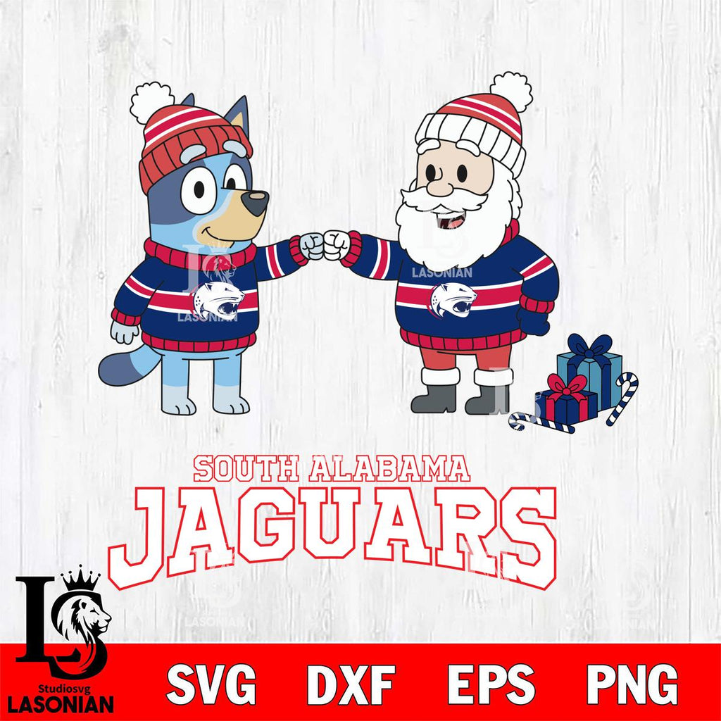 ►With the South Alabama Jaguars Bluey With Satan Christmas, you can let your creativity run wild. This INSTANT DOWNLOAD package includes a ZIP folder containing the following:
