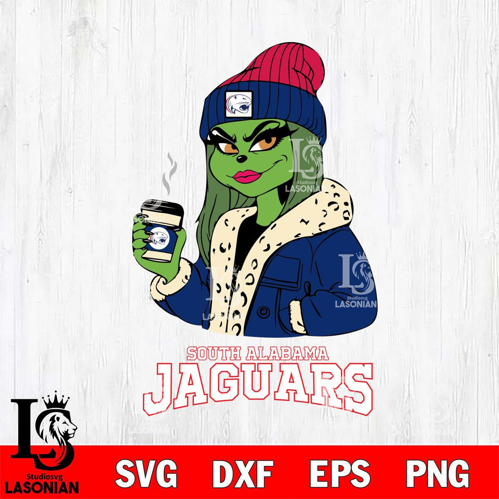 Plus, you can print these designs on a wide range of surfaces such as mugs, t-shirts, tumblers, flags, and more. Unleash your creativity and personalize your world with South Alabama Jaguars Girls Grinch Bougie