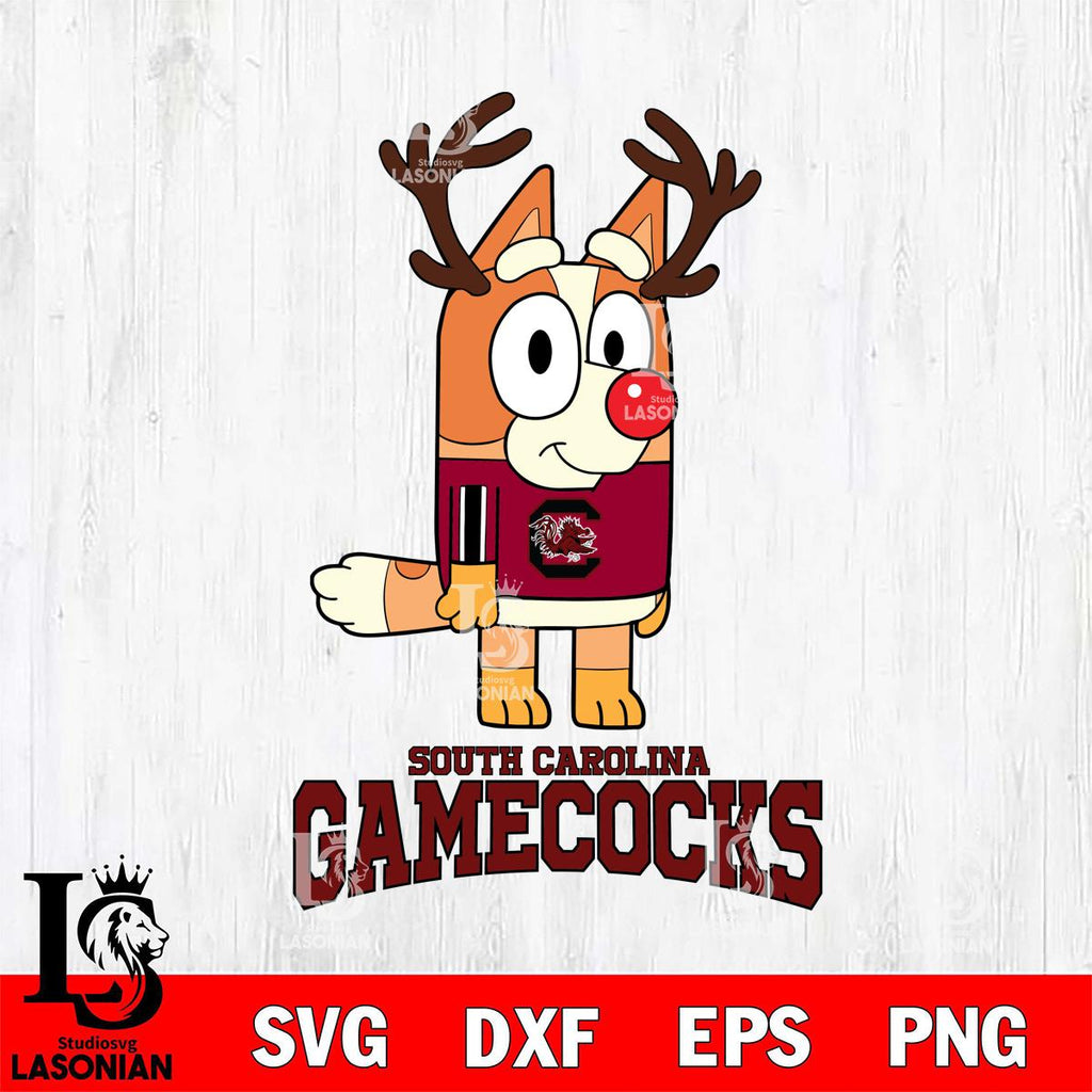 South Carolina Gamecocks Bluey Chilli Christmas Deer Svg Eps Dxf Png File, Digital Download