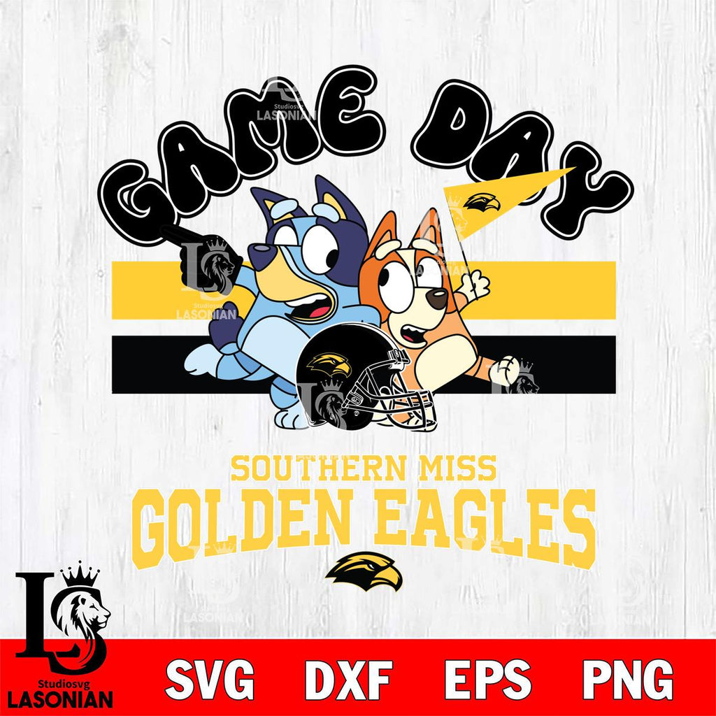 Plus, you can print these designs on a wide range of surfaces such as mugs, t-shirts, tumblers, flags, and more. Unleash your creativity and personalize your world with Southern Miss Golden Eagles Bluey & Bingo 9