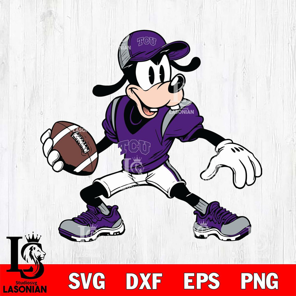 Plus, you can print these designs on a wide range of surfaces such as mugs, t-shirts, tumblers, flags, and more. Unleash your creativity and personalize your world with TCU Horned Frogs Goofy