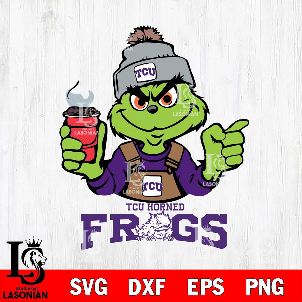 Plus, you can print these designs on a wide range of surfaces such as mugs, t-shirts, tumblers, flags, and more. Unleash your creativity and personalize your world with TCU Horned Frogs Grinch with coffee