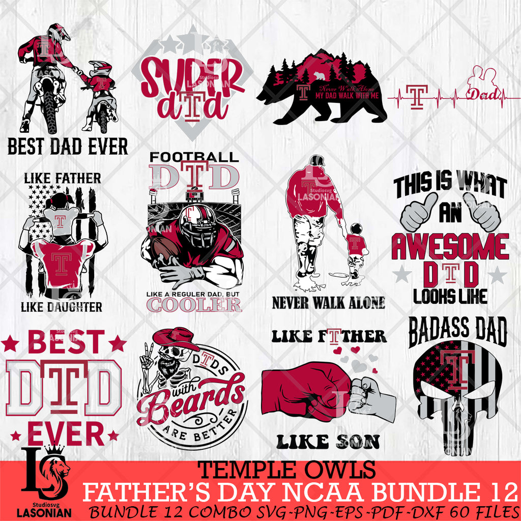 ►With the Temple Owls Fathers Day NCAA Bundle 12, you can let your creativity run wild. This INSTANT DOWNLOAD package includes a ZIP folder containing the following: