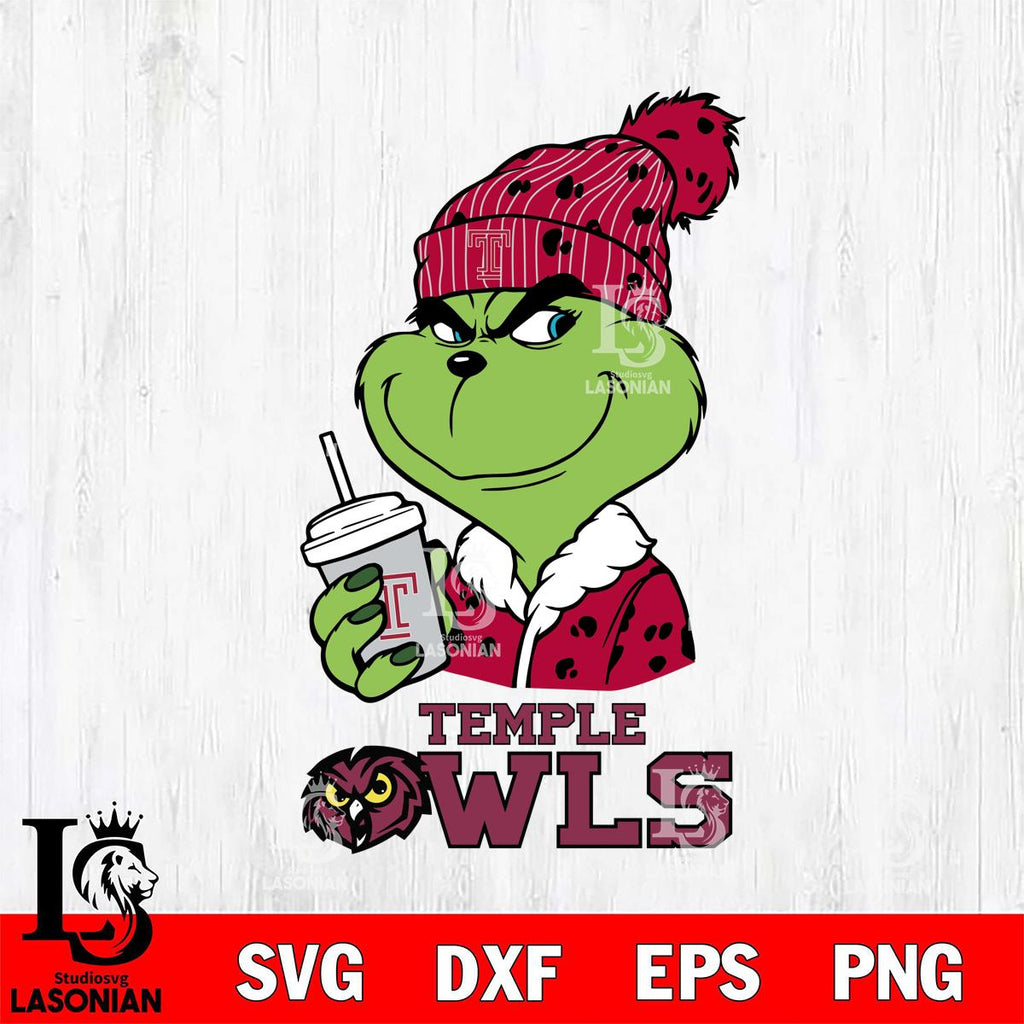 Temple Owls Grinch Cofffe Christmas Cut Files Cricut, Svg Dxf Eps Png file, Digital download , Silhouette