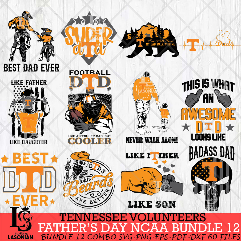 Tennessee Volunteers Fathers Day NCAA Bundle 12 Svg Eps Dxf Png File, Digital Download, Instant Download