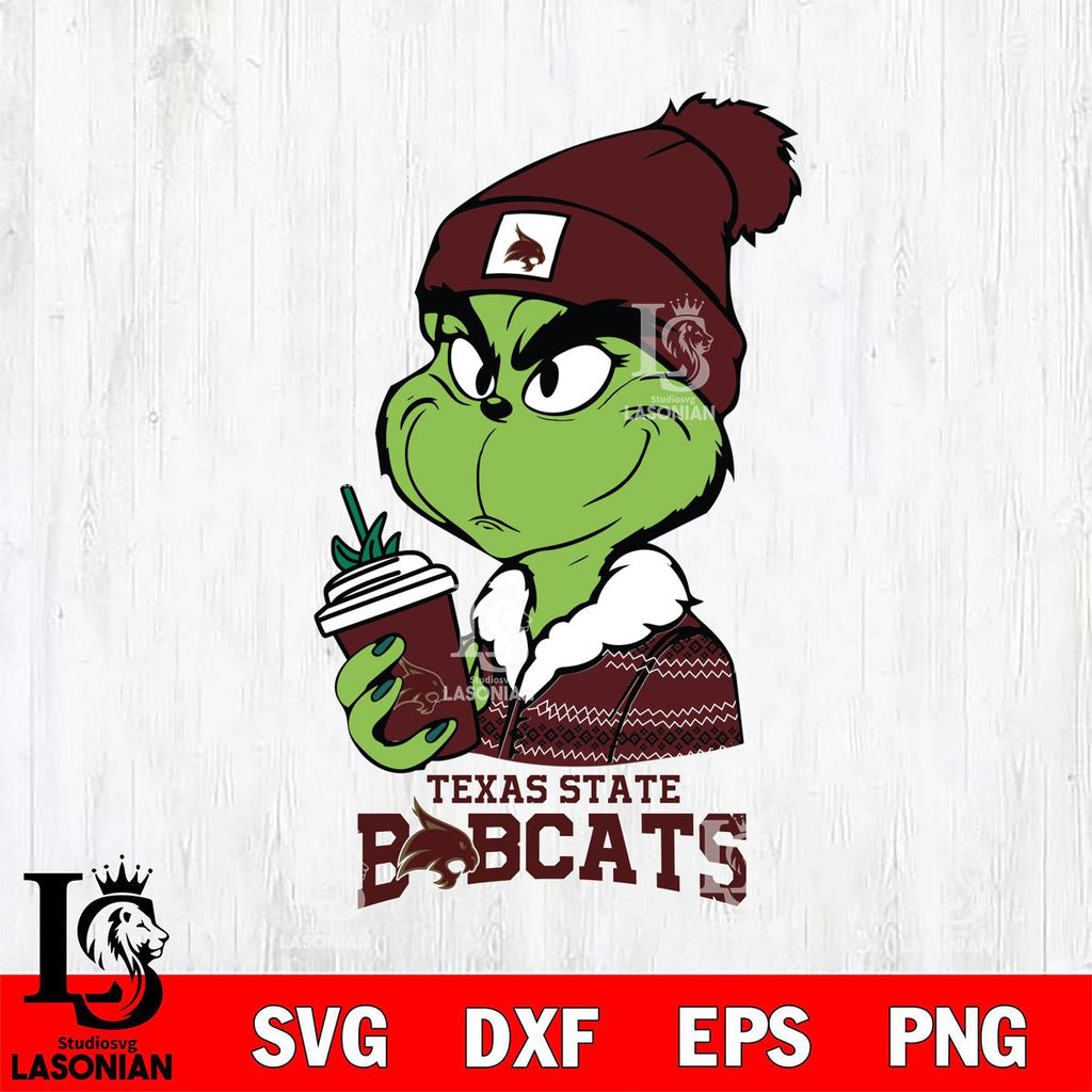 Texas State Bobcats Boujee Grinch Christmas Cut Files Cricut, Svg Dxf Eps Png file, Digital download , Silhouette