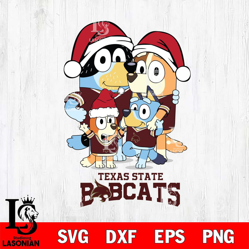►With the Texas State Bobcats Christmas Bluey Family Sport, you can let your creativity run wild. This INSTANT DOWNLOAD package includes a ZIP folder containing the following:
