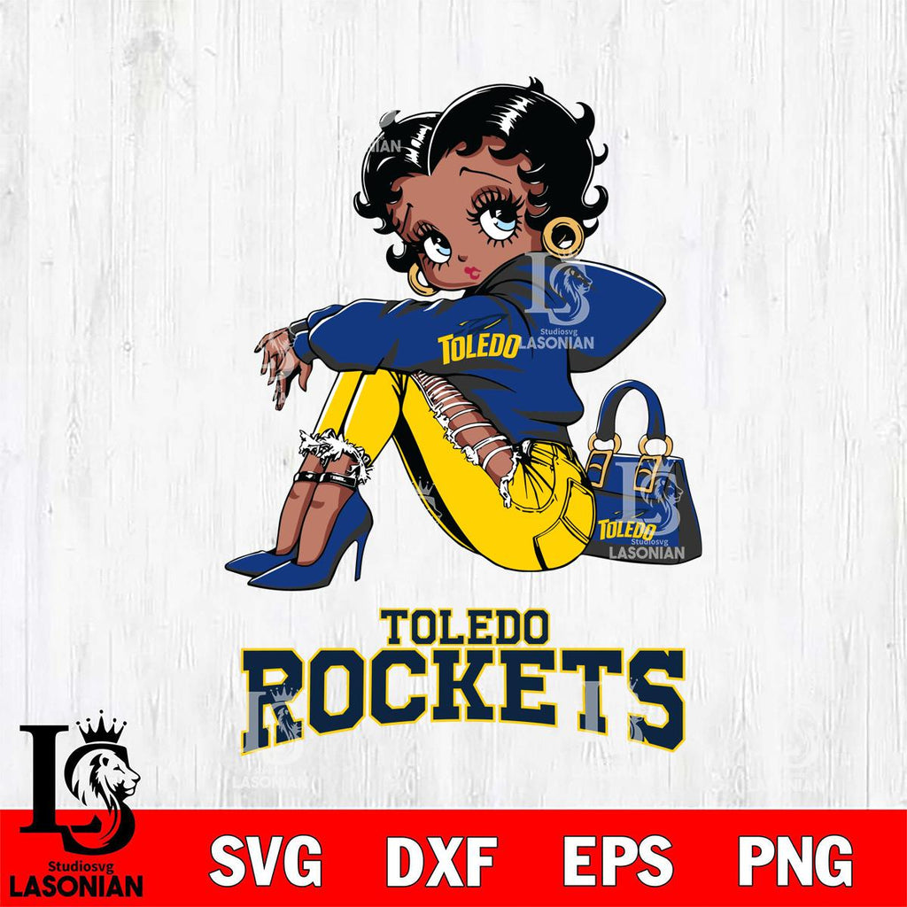 Plus, you can print these designs on a wide range of surfaces such as mugs, t-shirts, tumblers, flags, and more. Unleash your creativity and personalize your world with Toledo Rockets Betty Boop Black Fan Girl