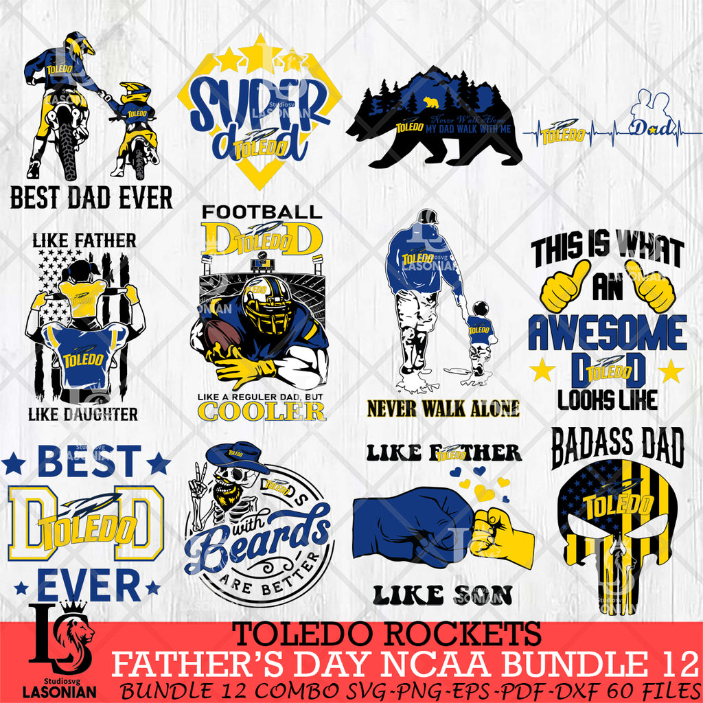 Toledo Rockets Fathers Day NCAA Bundle 12 Svg Eps Dxf Png File, Digital Download, Instant Download