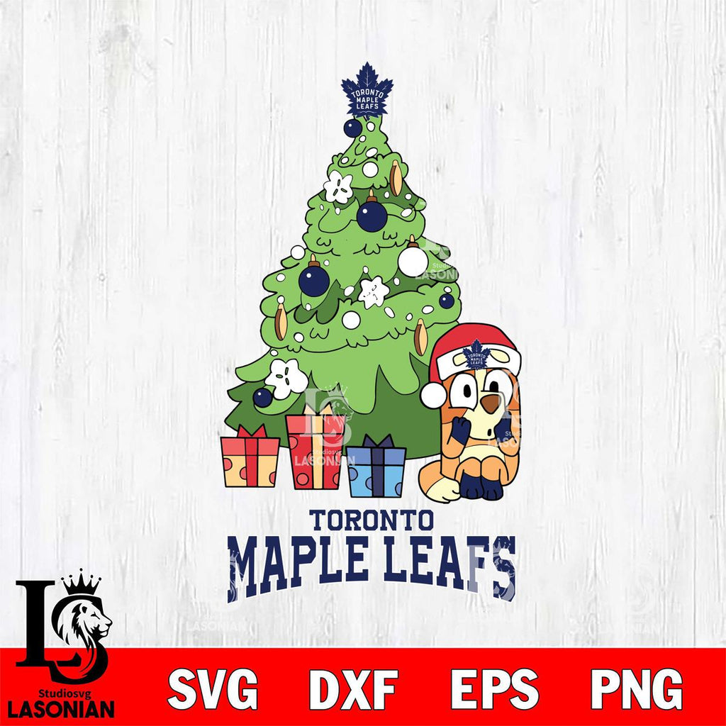 Plus, you can print these designs on a wide range of surfaces such as mugs, t-shirts, tumblers, flags, and more. Unleash your creativity and personalize your world with Toronto Maple Leafs Bluey Chilli Christmas Tree