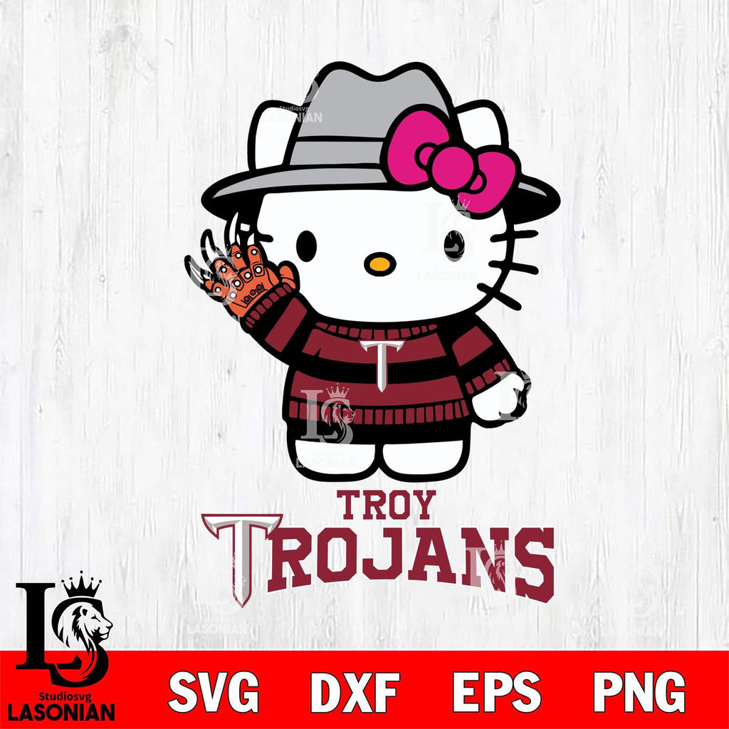 Plus, you can print these designs on a wide range of surfaces such as mugs, t-shirts, tumblers, flags, and more. Unleash your creativity and personalize your world with Troy Trojans Hello Kitty Horror 6