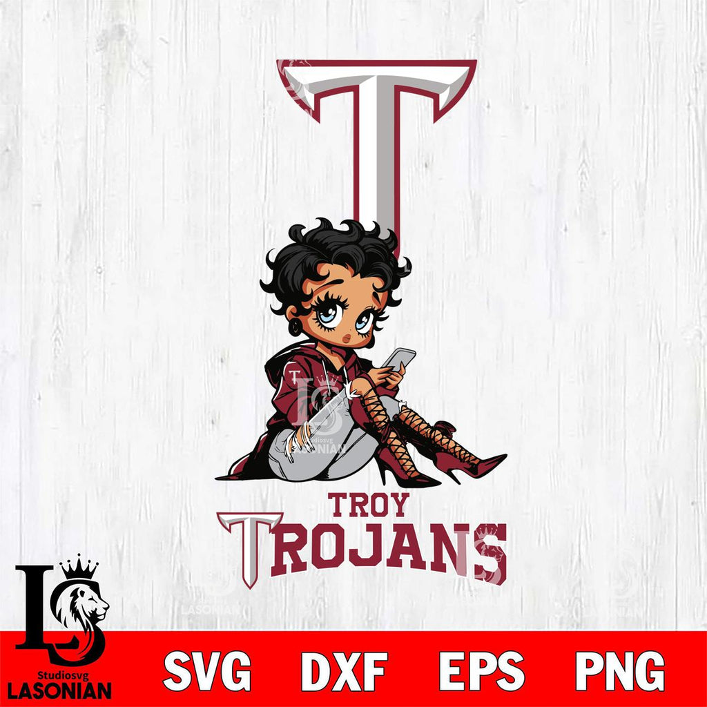Plus, you can print these designs on a wide range of surfaces such as mugs, t-shirts, tumblers, flags, and more. Unleash your creativity and personalize your world with Troy Trojans Style Black Fan Girl Betty Boop
