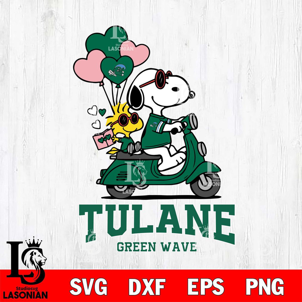 Tulane Green Wave Snoopy and Woodstock Valentine File Cut, NCAA SVG DXF EPS PNG PDF File, Digital Download , Criucut , Silhouette