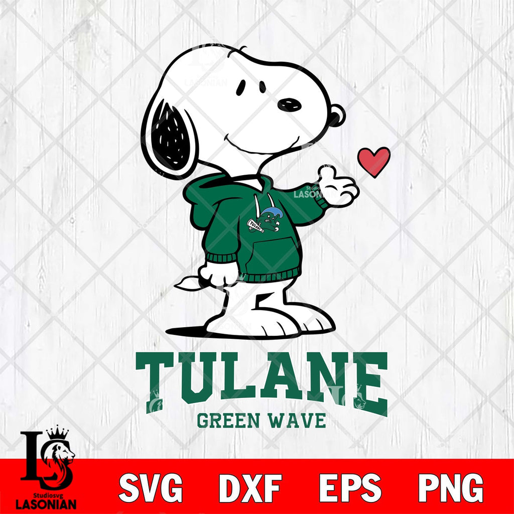 Tulane Green Wave Snoopy cute valentine File cut , Criucut , Silhouette ,Digital Download, NCAA SVG DXF EPS PNG PDF File