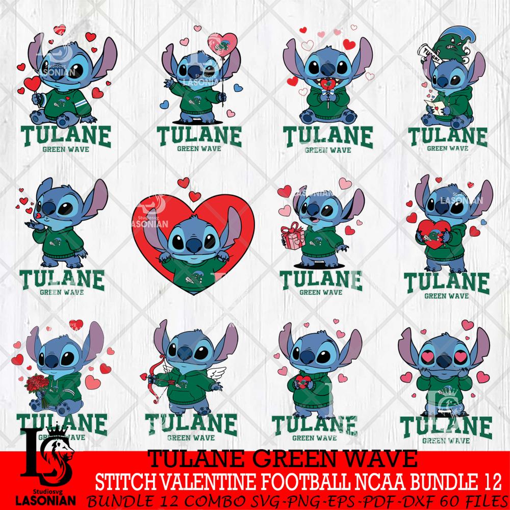 Tulane Green Wave Stitch Valentine NCAA Bundle Digital Download, NCAA SVG DXF EPS PNG PDF File, Stitch File cut , Criucut , Silhouette