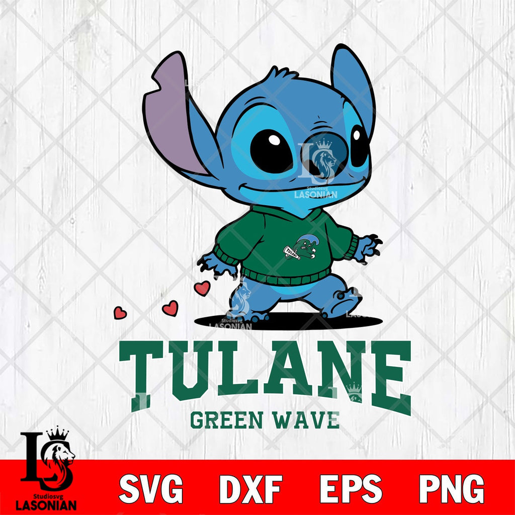 Tulane Green Wave Stitch walking cartoon File cut , Football Criucut , Digital Download, NCAA SVG DXF EPS PNG PDF File, Instant Download