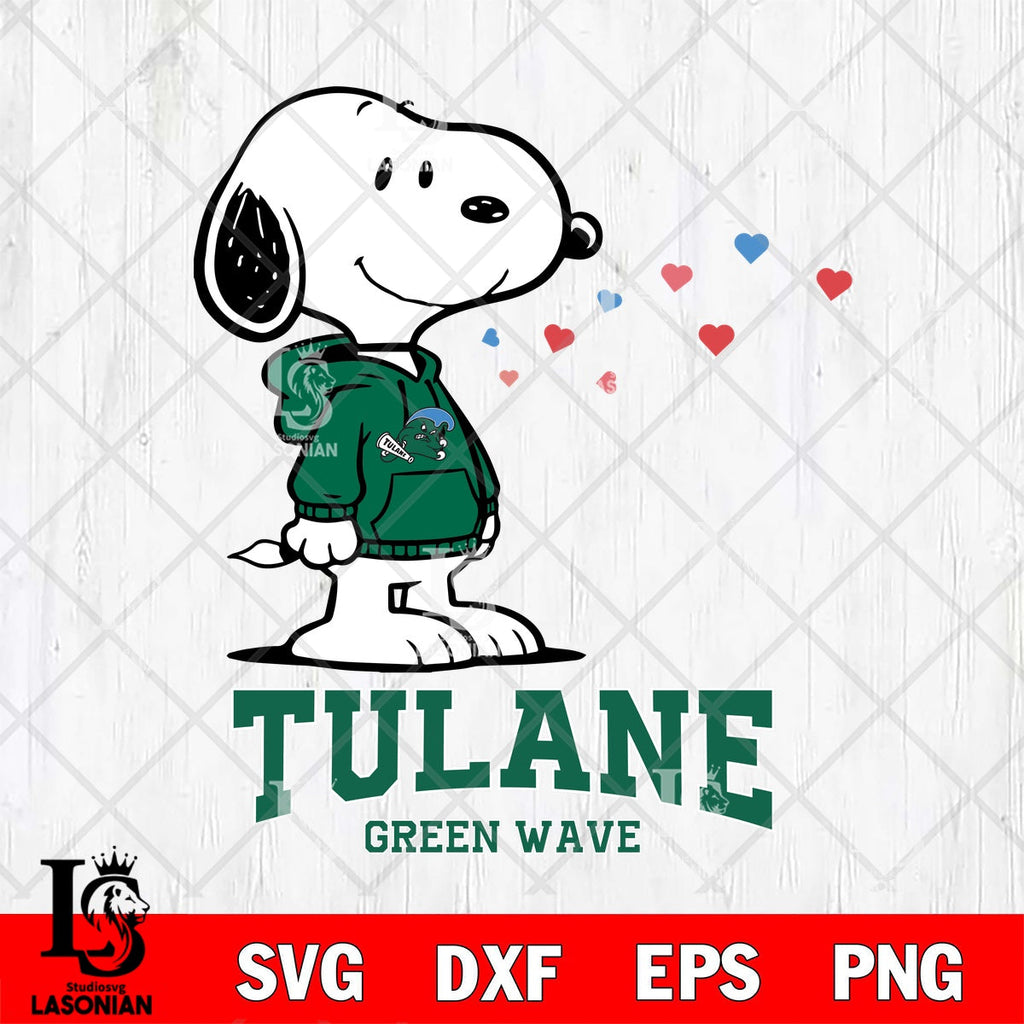 Tulane Green Wave Valentine Snoopy with Heart File cut , Criucut , Silhouette ,Digital Download, NCAA SVG DXF EPS PNG PDF File