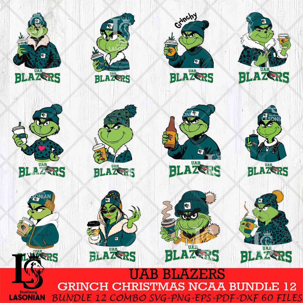 Plus, you can print these designs on a wide range of surfaces such as mugs, t-shirts, tumblers, flags, and more. Unleash your creativity and personalize your world with UAB Blazers Grinch Christmas NCAA Bundle 12