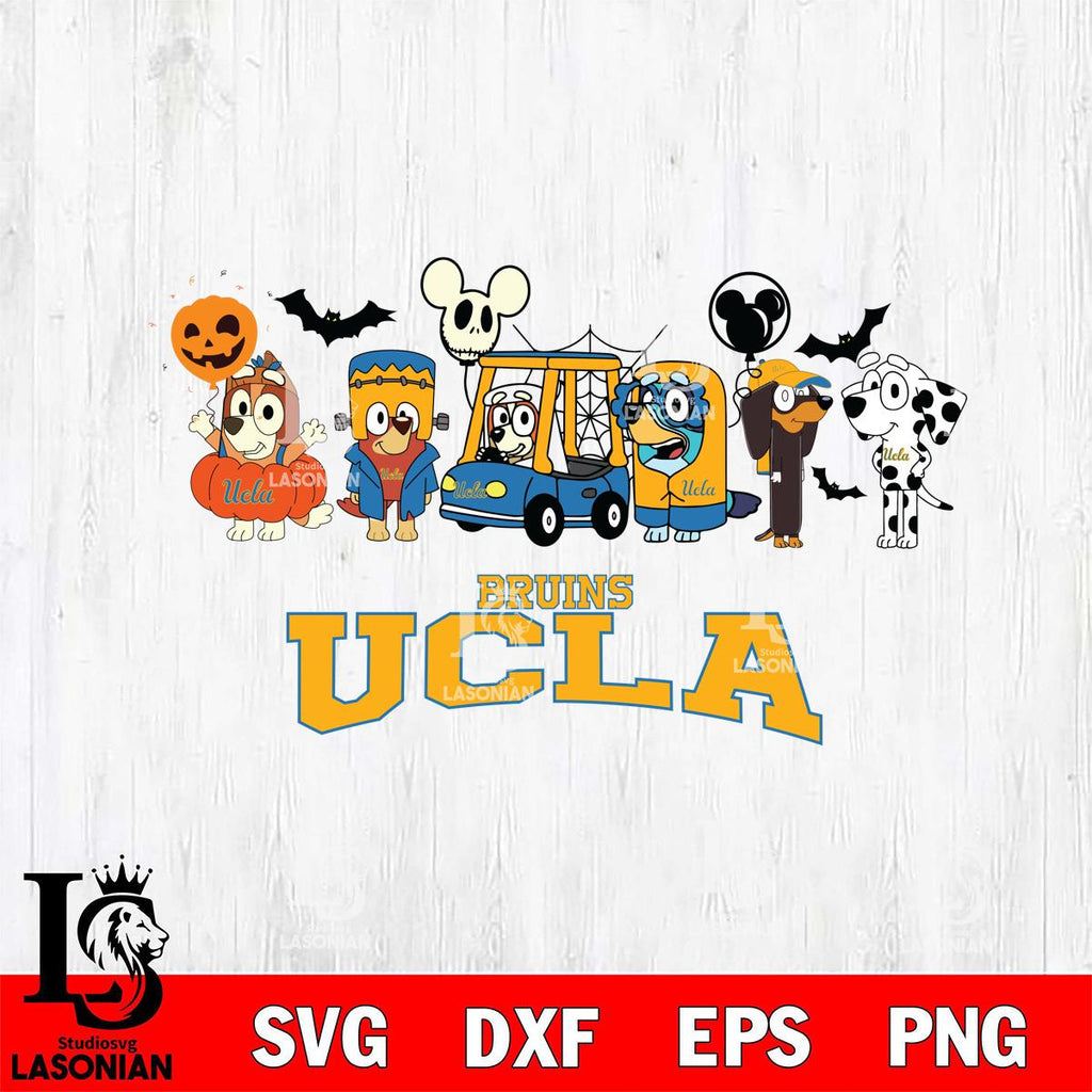 Plus, you can print these designs on a wide range of surfaces such as mugs, t-shirts, tumblers, flags, and more. Unleash your creativity and personalize your world with UCLA Bruins Bluey Halloween