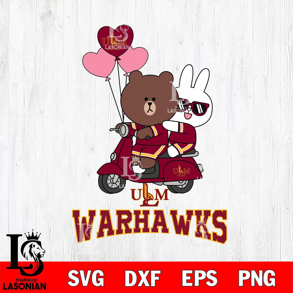 Buy now UL Monroe Warhawks Brown and Cony Valentine File Cut, NCAA SVG DXF EPS PNG PDF File, Digital Download , Criucut , Silhouette