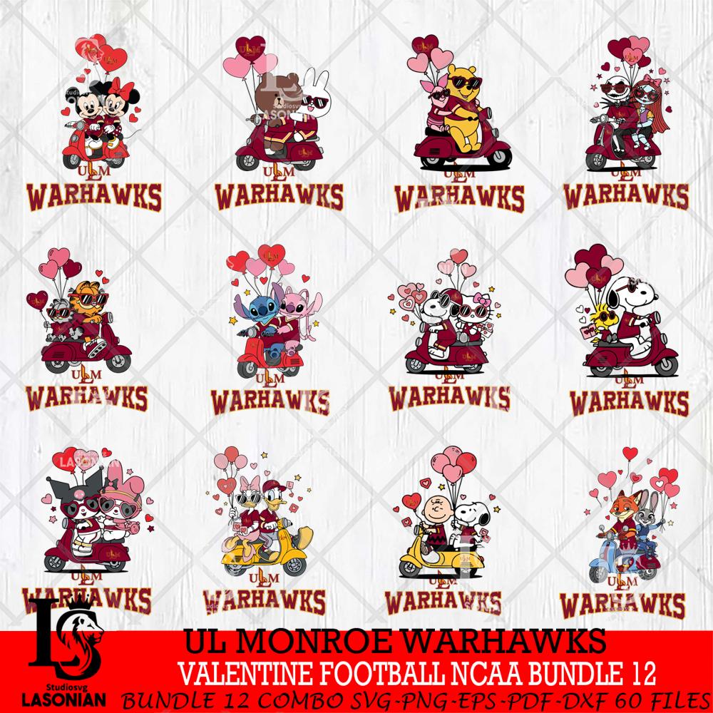 UL Monroe Warhawks Cartoon Valentine NCAA Bundle File Cut, NCAA SVG DXF EPS PNG PDF File, Digital Download , Criucut , Silhouette