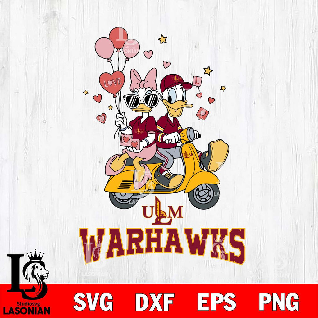 Buy now UL Monroe Warhawks Donald and Daisy Valentine File Cut, NCAA SVG DXF EPS PNG PDF File, Digital Download , Criucut , Silhouette
