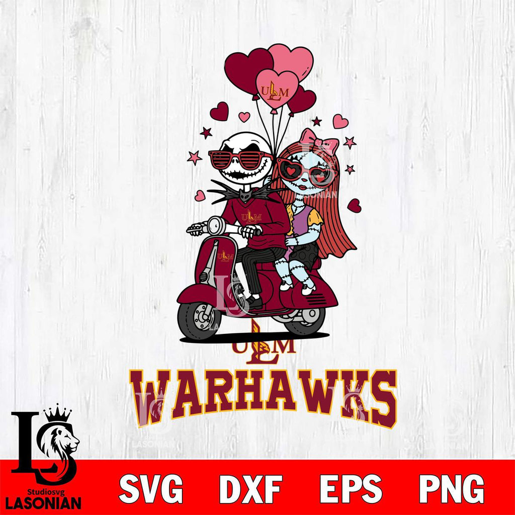 Buy now UL Monroe Warhawks Jack and Sally Valentine File Cut, NCAA SVG DXF EPS PNG PDF File, Digital Download , Criucut , Silhouette