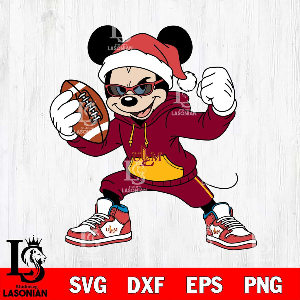 UL Monroe Warhawks Mickey Cool Football Christmas File Cut, NCAA SVG DXF EPS PNG FILE, Digital Download , Criucut , Silhouette