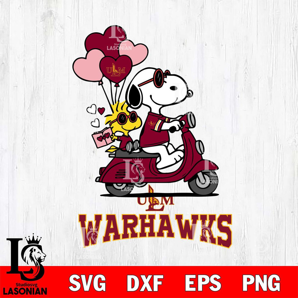 Buy now UL Monroe Warhawks Snoopy and Woodstock Valentine File Cut, NCAA SVG DXF EPS PNG PDF File, Digital Download , Criucut , Silhouette
