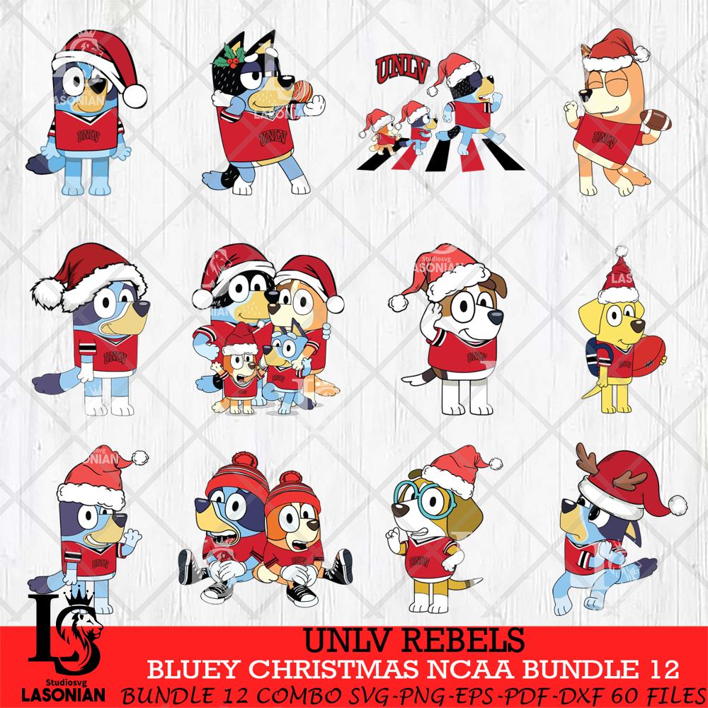 UNLV Rebels Bluey Christmas NCAA Bundle 12 SVG Eps Dxf Png File, Digital Download, Instant Download