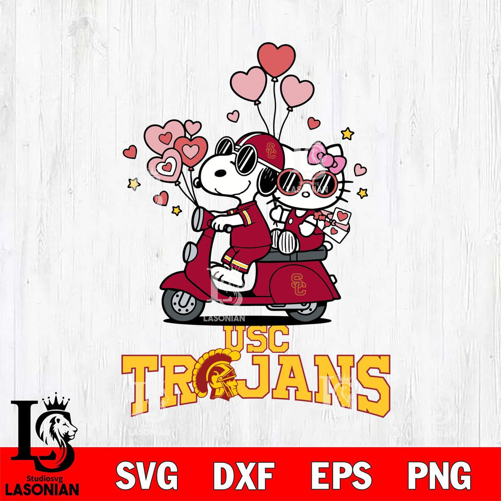 USC Trojans Snoopy and Hello Kitty Valentine File Cut, NCAA SVG DXF EPS PNG PDF File, Digital Download , Criucut , Silhouette