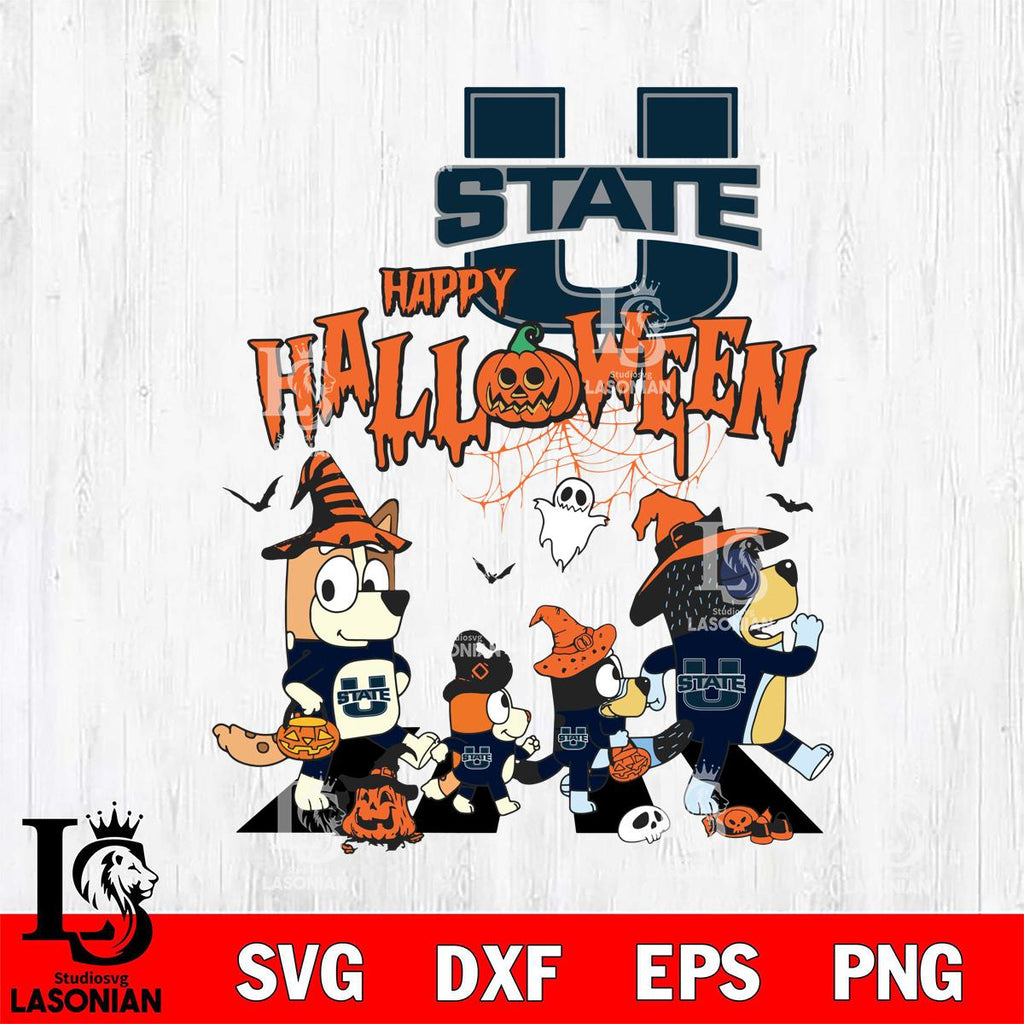 Plus, you can print these designs on a wide range of surfaces such as mugs, t-shirts, tumblers, flags, and more. Unleash your creativity and personalize your world with Utah State Aggies Bluey Halloween Family