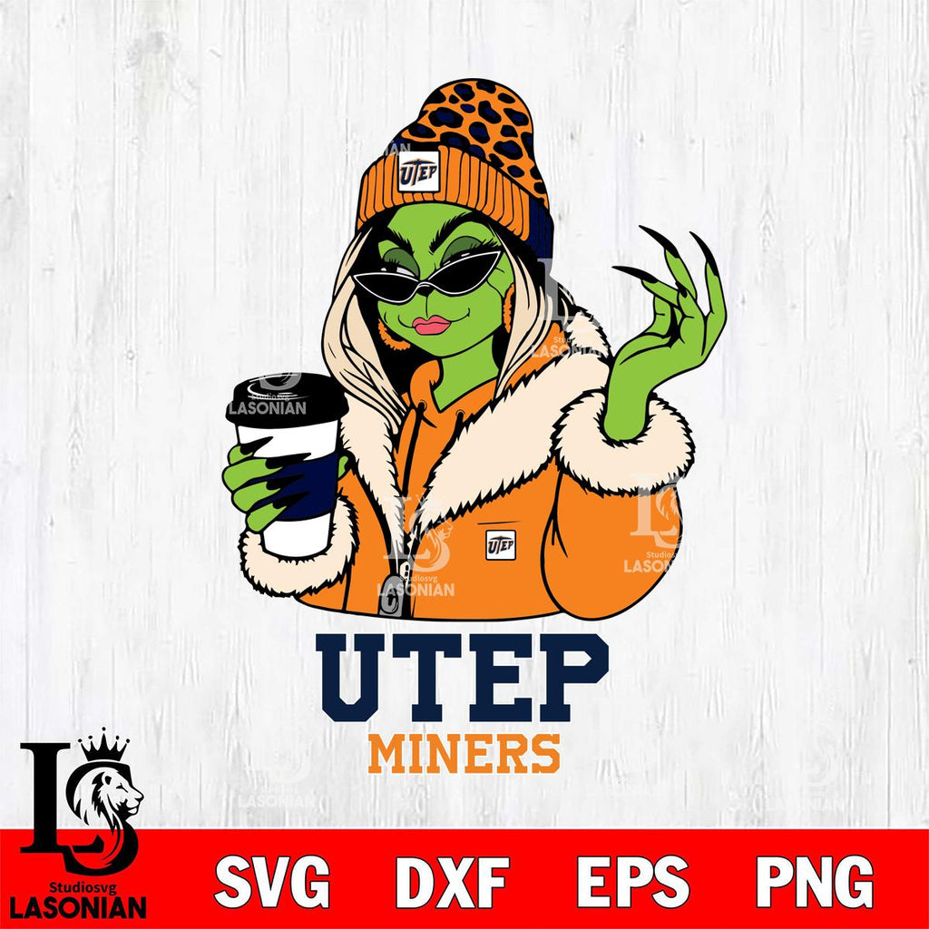 UTEP Miners Boujee Grinch Girls Christmas Cut Files Cricut, Svg Dxf Eps Png file, Digital download , Silhouette