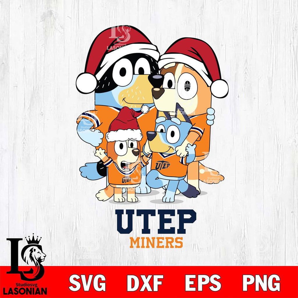 UTEP Miners Christmas Bluey Family Sport Cut Files,Bluey Cricut,Christmas Svg , Bluey svg , Digital Download, dxf eps png pdf file