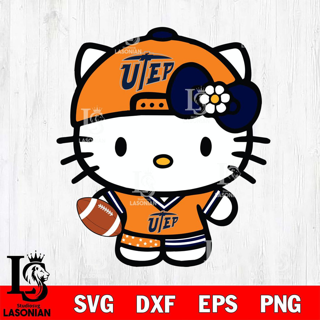 Plus, you can print these designs on a wide range of surfaces such as mugs, t-shirts, tumblers, flags, and more. Unleash your creativity and personalize your world with UTEP Miners Cute Hello Kitty Football 10
