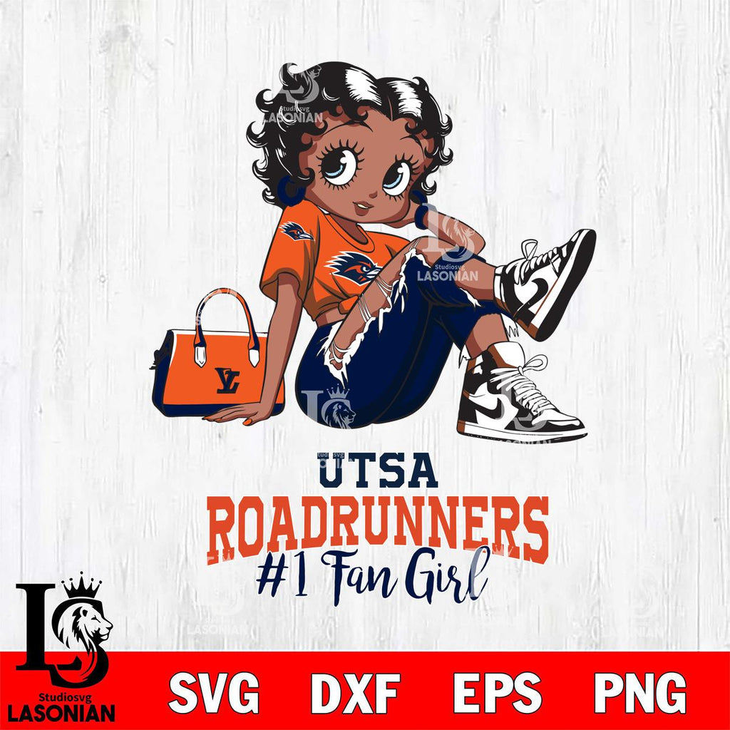 UTSA Roadrunners #1 Black Fan Girl Betty Boop, Svg Eps Dxf Png File, Digital Download