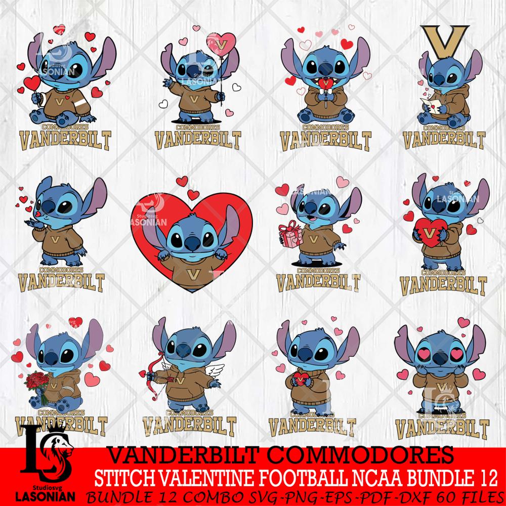 Plus, you can print these designs on a wide range of surfaces such as mugs, t-shirts, tumblers, flags, and more. Unleash your creativity and personalize your world with Vanderbilt Commodores Stitch Valentine NCAA Bundle Digital Download, NCAA SVG DXF EPS PNG PDF File, Stitch File cut , Criucut , Silhouette