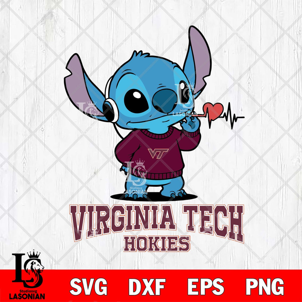 Buy now Virginia Tech Hokies Stitch Headphones Heart File cut , Football Criucut , Digital Download, NCAA SVG DXF EPS PNG PDF File, Instant Download