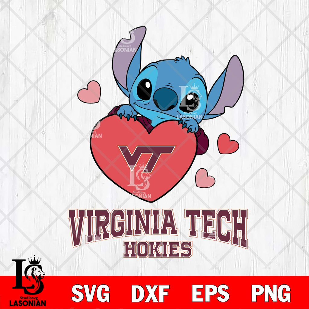 Buy now Virginia Tech Hokies Stitch hugging heart File cut , Football Criucut , Digital Download, NCAA SVG DXF EPS PNG PDF File, Instant Download