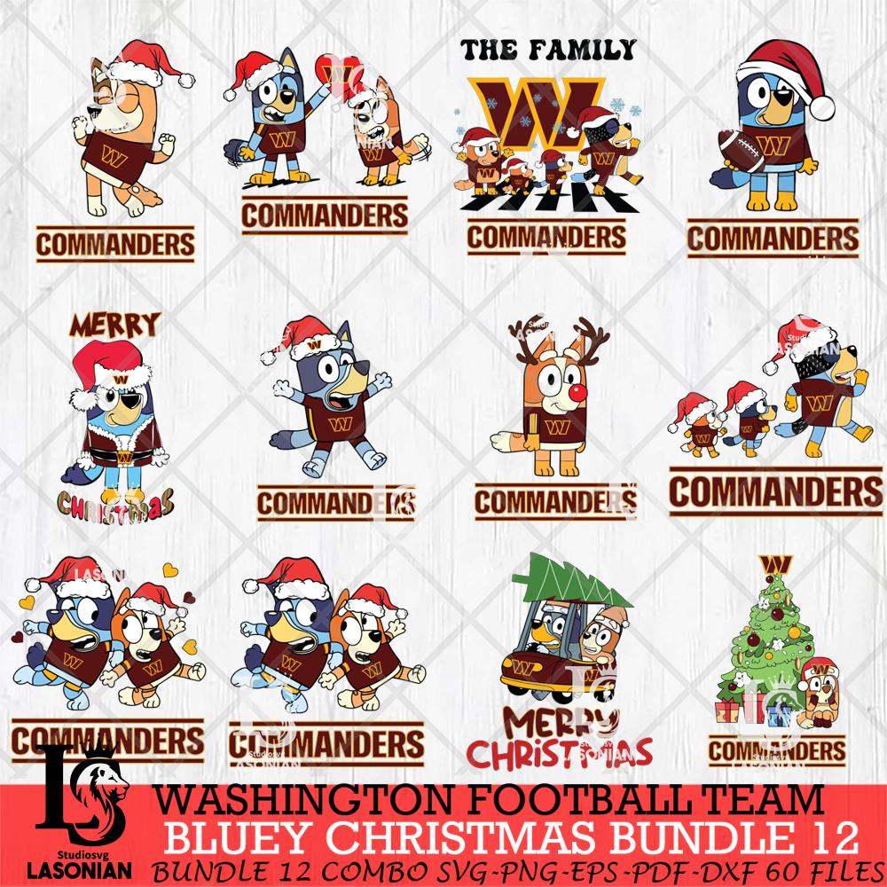 Washington Football Team Bluey Christmas Holiday Bundle 12 Svg Eps Dxf Png File, Digital Download