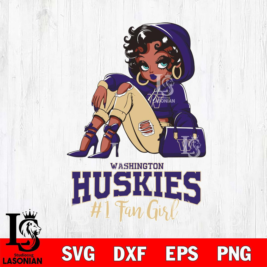 Washington Huskies #1 beauty Black Fan Girl, Svg Eps Dxf Png File, Digital Download