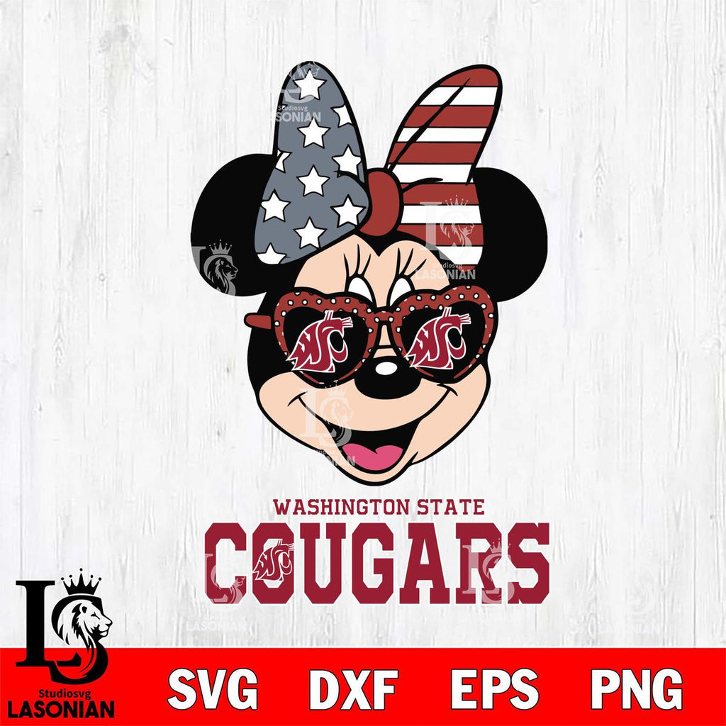 Plus, you can print these designs on a wide range of surfaces such as mugs, t-shirts, tumblers, flags, and more. Unleash your creativity and personalize your world with Washington State Cougars Minnie Mouse Love 2