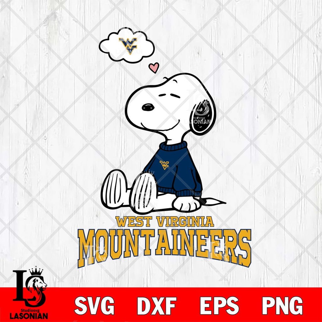 West Virginia Mountaineers Snoopy in Red Sweater File cut , Criucut , Silhouette ,Digital Download, NCAA SVG DXF EPS PNG PDF File