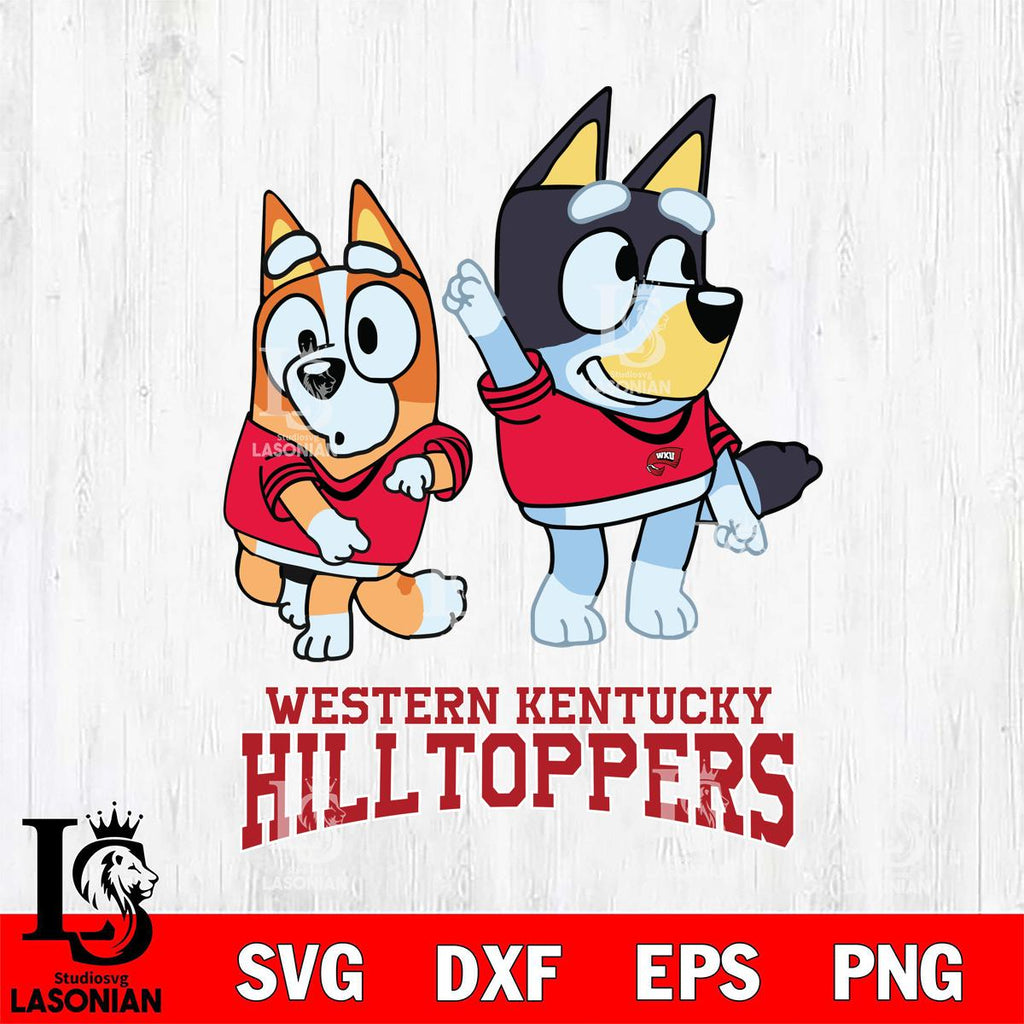 Plus, you can print these designs on a wide range of surfaces such as mugs, t-shirts, tumblers, flags, and more. Unleash your creativity and personalize your world with Western Kentucky Hilltoppers Bluey Chilli Mode Dance
